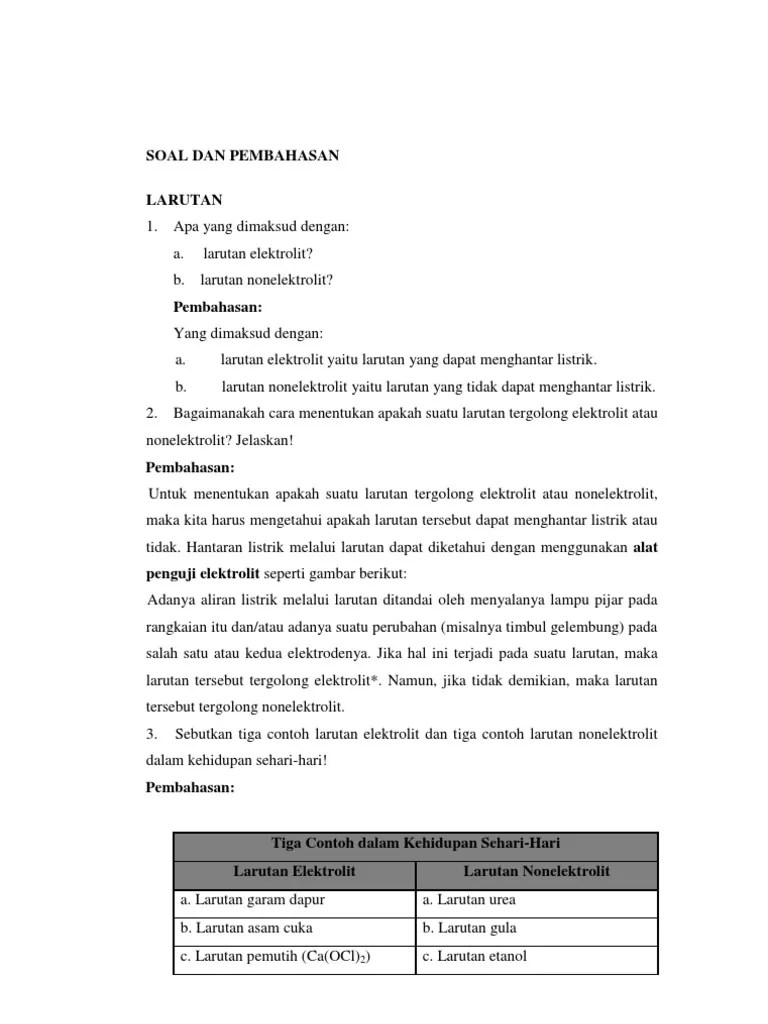 Contoh Soal Dam Pembahasan Larutan Elektrolik Dan Non : Contoh Soal Dan Pembahasan Sifat Koligatif Larutan Elektrolit Dapatkan Contoh - Jika senyawa caf2 dilarutkan ke dalam air, maka spesi apa sajakah yang terdapat dalam larutan tersebut?